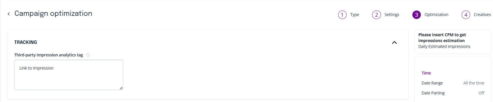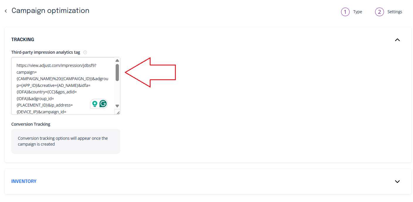 Go to your campaign’s Campaign Optimization -> Tracking section.