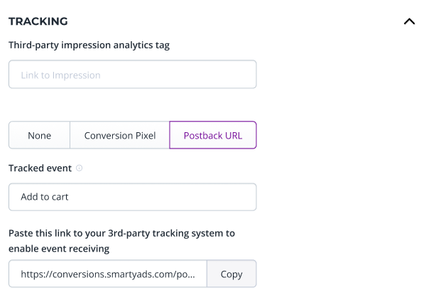 Paste the copied postback link to the 3rd-party tracking system for the chosen conversion tracking events.