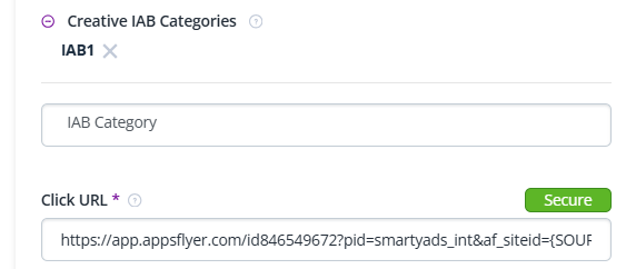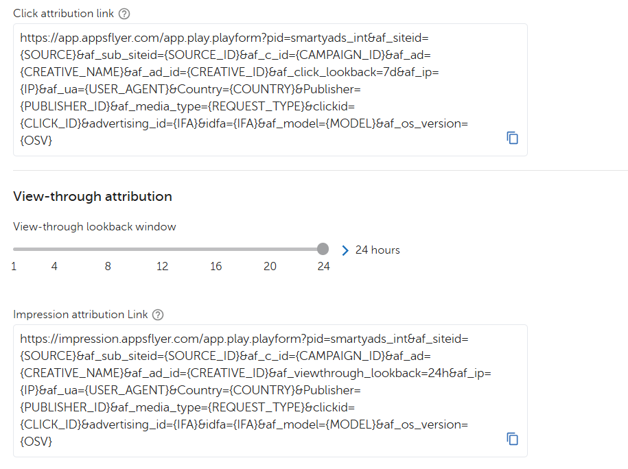 Copy the AppsFlyer links for your tracking and paste them into the SmartyAds DSP admin panel: